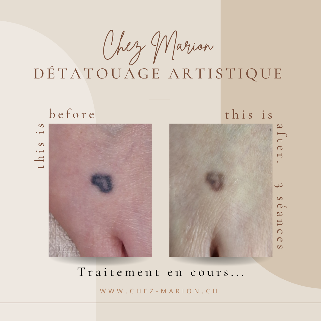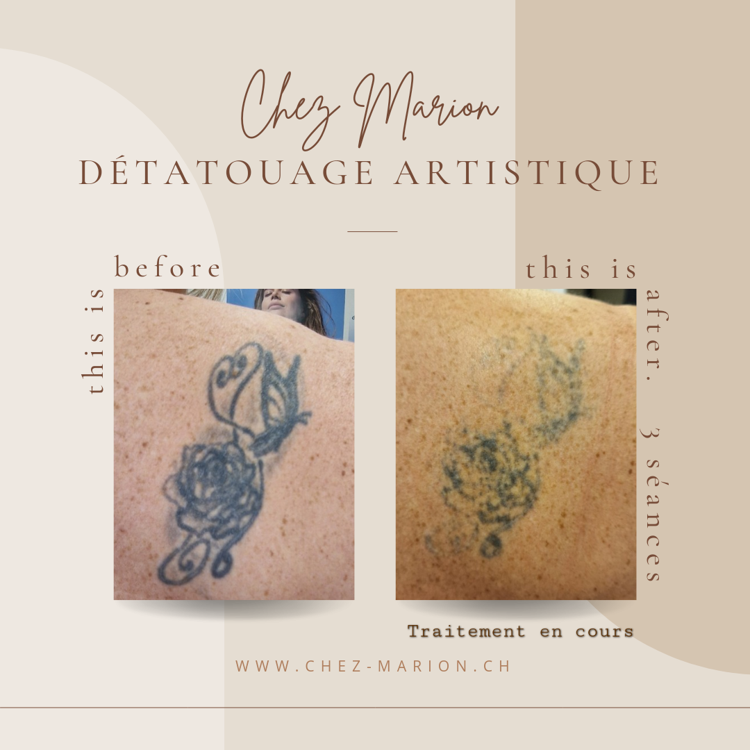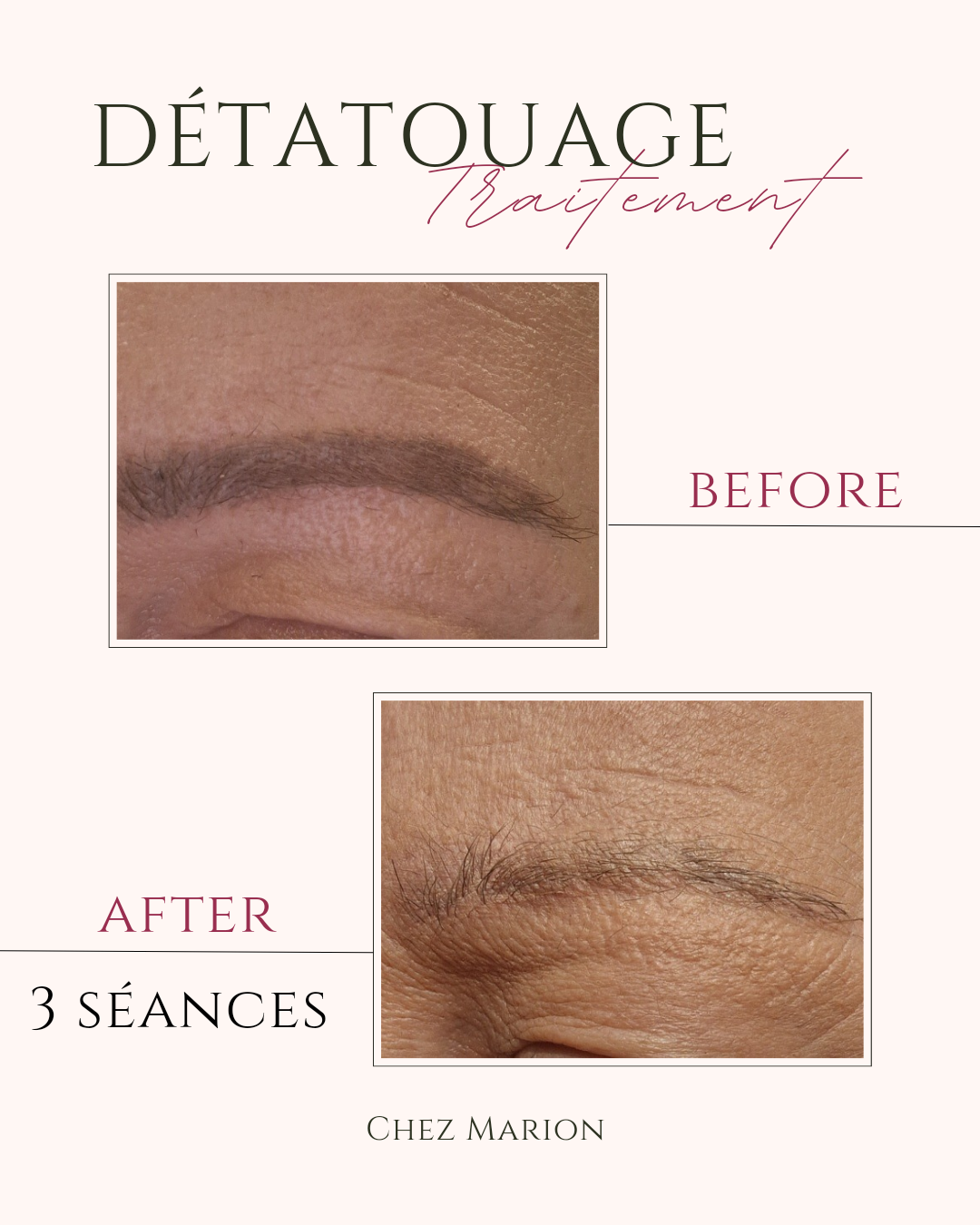 Il est important de noter que la zone traitée peut être rouge, enflée et sensible après le traitement. Les résultats peuvent varier selon la taille, la profondeur et la couleur du tatouage, ainsi que la réponse individuelle de chaque patient.