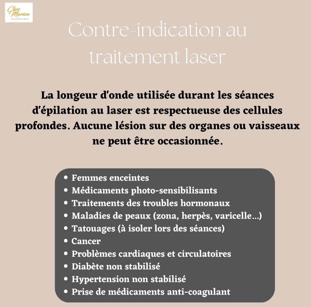 Les contre-indications pour les traitements au laser ND YAG incluent les infections actives, les plaies ouvertes, les cicatrices Chéloïdes et certaines conditions de la peau comme l’eczéma ou le psoriasis. Lors de la prise de médicaments photo-sensibilisants ou antibiotiques. Les personnes enceintes ou qui allaitent devraient également éviter les traitements au laser ND YAG. Lorsque la dernière exposition au soleil remonte à moins de 2 semaines ou après une application de crème auto-bronzante. La peau ne doit pas être bronzée. Le laser ND YAG ne peut pas détatouer un tatouage récent de moins de 2-3 mois. De plus, le laser ND YAG ne doit pas être utilisé sur les types de peau plus foncés car cela peut causer de l’hyperpigmentation. Il est important de consulter un professionnel de santé qualifié avant de subir tout traitement laser.